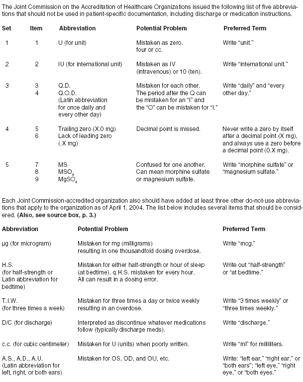 Joint Commission's List of Do-Not-Use Abbreviations